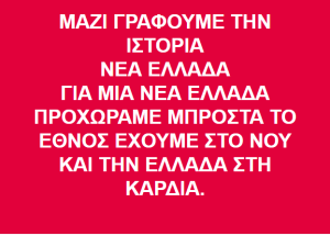 « Με την Νέα Ελλάδα προχωράμε μαζί, το έθνος έχουμε στου νου και την Ελλάδα στην καρδιά»