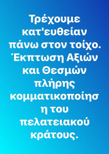 Χόρτασε ο λαός με απάτες και αυταπάτες . Όχι πια «αυταπάτες», αλλά κοινές απάτες, από κοινούς πολιτικούς ΑΠΑΤΕΩΝΕΣ. Ένα διεφθαρμένο πελατειακό κράτος στο οποίο κάνουν κουμάντο μια χούφτα διαπλεκόμενες με